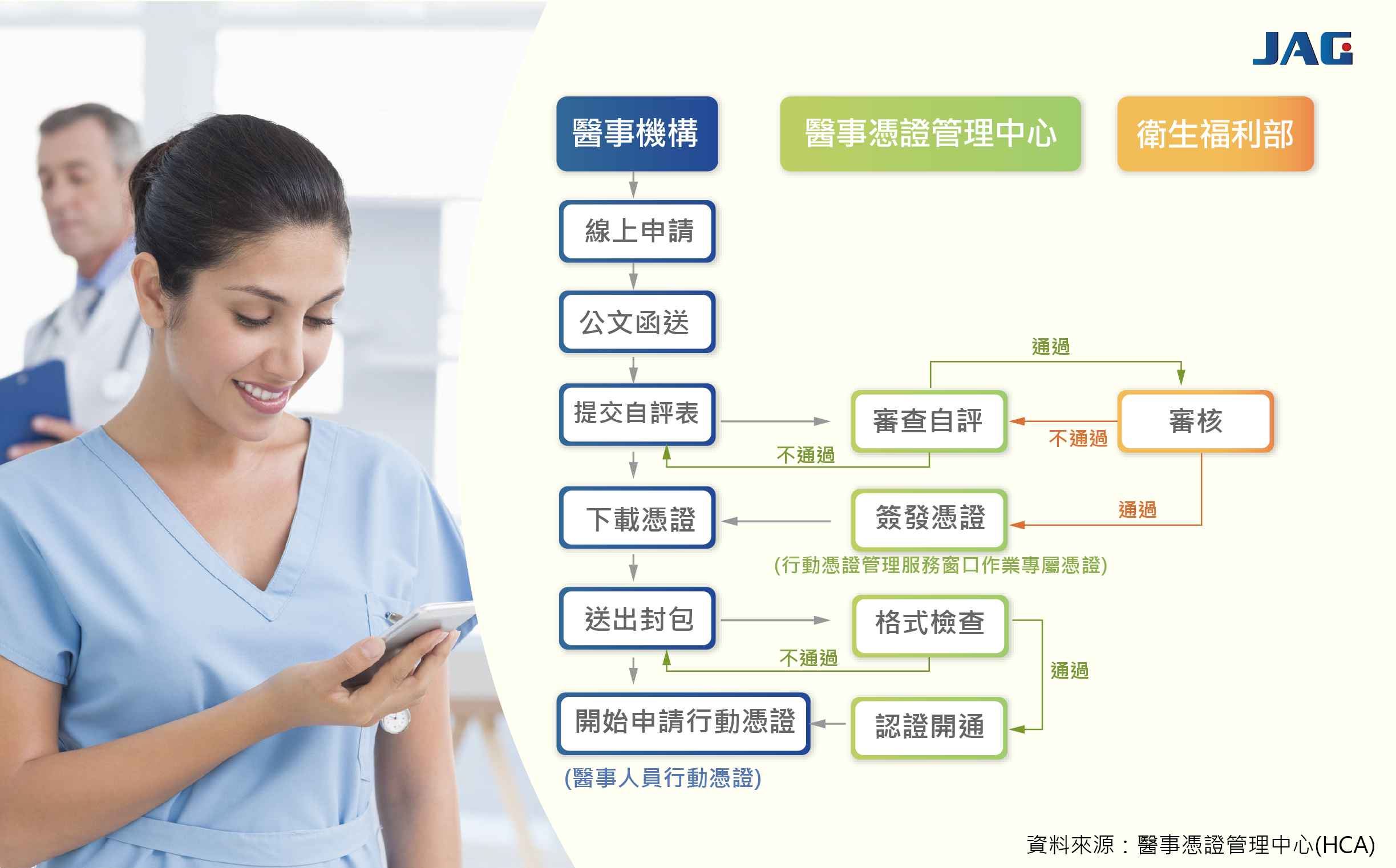 完成伺服器主機申請憑證後,捷格科技將協助與醫院各個窗口進行訪談,了解醫院的系統架構及資安政策等細節後,依照訪談內容協助醫院完成自評文件的撰寫以及憑證封包傳遞。